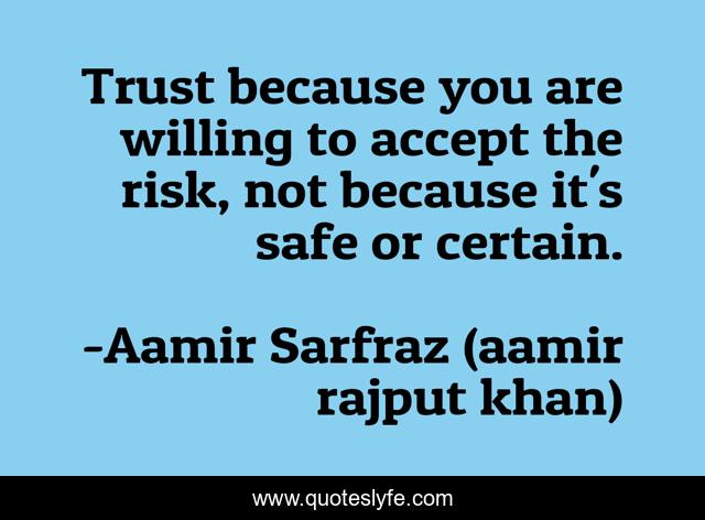 "Aamir Sarfraz (aamir rajput khan) Quotes." Quoteslyfe.com, 2025. Fri. 05 Dec. 2025. <https://www.quoteslyfe.com/quote/Trust-because-you-are-willing-to-accept-36796>.