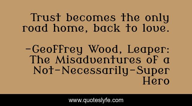 This page presents the quote "Trust becomes the only road home, back to love.". Author of this quote is Geoffrey Wood, Leaper: The Misadventures of a Not-Necessarily-Super Hero. This quote is about christianity, love, christian-fiction, religion, trust, affection,.