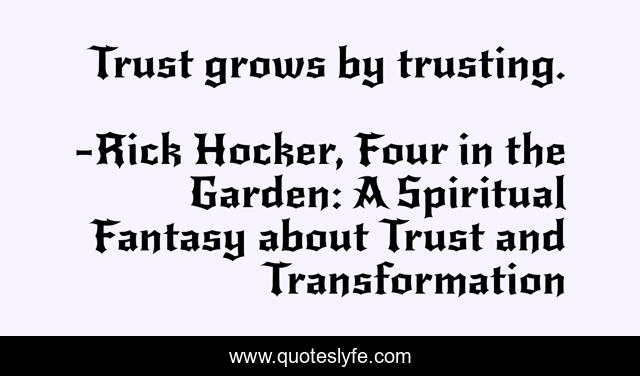 "Rick Hocker, Four in the Garden: A Spiritual Fantasy about Trust and Transformation Quotes." Quoteslyfe.com, 2025. Sat. 06 Dec. 2025. <https://www.quoteslyfe.com/quote/Trust-grows-by-trusting-119495>.
