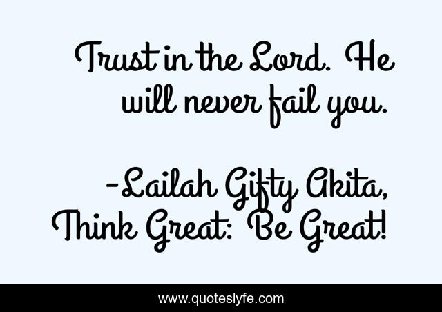 "Lailah Gifty Akita, Think Great: Be Great! Quotes." Quoteslyfe.com, 2025. Fri. 05 Dec. 2025. <https://www.quoteslyfe.com/quote/Trust-in-the-Lord-He-will-never-119509>.