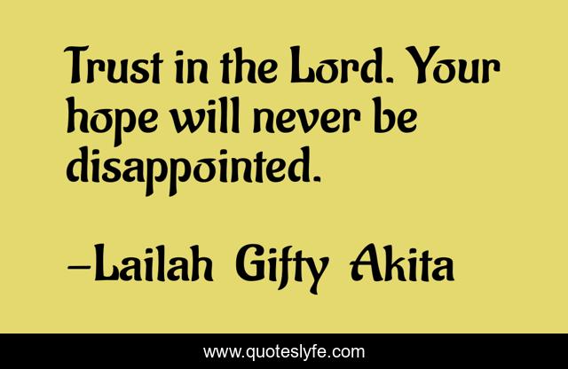 This page presents the quote "Trust in the Lord. Your hope will never be disappointed.". Author of this quote is Lailah Gifty Akita. This quote is about faith, christian-life, hope,.