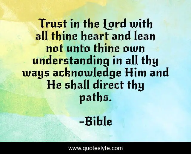 This page presents the quote "Trust in the Lord with all thine heart and lean not unto thine own understanding in all thy ways acknowledge Him and He shall direct thy paths.". Author of this quote is Bible. .