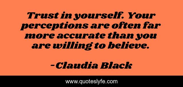 This page presents the quote "Trust in yourself. Your perceptions are often far more accurate than you are willing to believe.". Author of this quote is Claudia Black. This quote is about believe, yourself,.