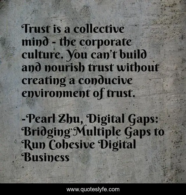 "Pearl Zhu, Digital Gaps: Bridging Multiple Gaps to Run Cohesive Digital Business Quotes." Quoteslyfe.com, 2025. Sat. 06 Dec. 2025. <https://www.quoteslyfe.com/quote/Trust-is-a-collective-mind-the-corporate-119324>.
