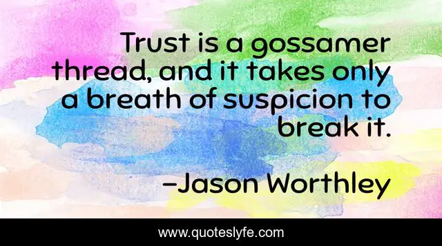 This page presents the quote "Trust is a gossamer thread, and it takes only a breath of suspicion to break it.". Author of this quote is Jason Worthley. .
