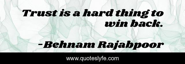 "Behnam Rajabpoor Quotes." Quoteslyfe.com, 2025. Sat. 06 Dec. 2025. <https://www.quoteslyfe.com/quote/Trust-is-a-hard-thing-to-win-120018>.