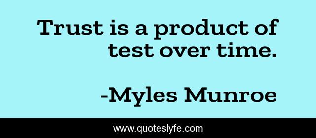 This page presents the quote "Trust is a product of test over time.". Author of this quote is Myles Munroe. This quote is about test, product, time,.
