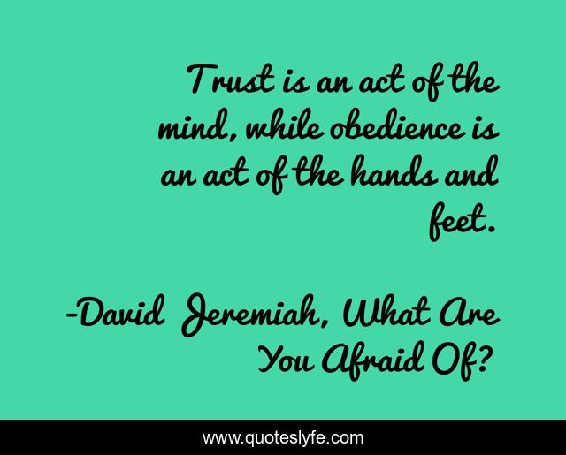This page presents the quote "Trust is an act of the mind, while obedience is an act of the hands and feet.". Author of this quote is David Jeremiah, What Are You Afraid Of?. This quote is about god, trust, obedience, christianity,.