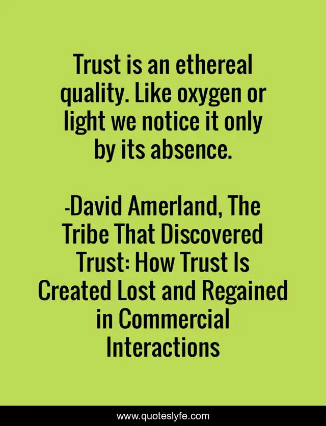 "David Amerland, The Tribe That Discovered Trust: How Trust Is Created Lost and Regained in Commercial Interactions Quotes." Quoteslyfe.com, 2025. Sat. 06 Dec. 2025. <https://www.quoteslyfe.com/quote/Trust-is-an-ethereal-quality-Like-oxygen-119458>.