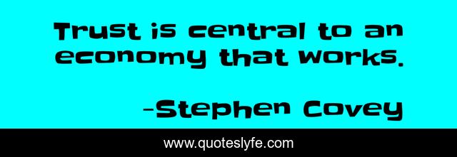 This page presents the quote "Trust is central to an economy that works.". Author of this quote is Stephen Covey. This quote is about works, central, economy,.