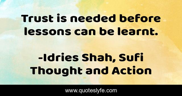 This page presents the quote "Trust is needed before lessons can be learnt.". Author of this quote is Idries Shah, Sufi Thought and Action. This quote is about sufis, psychology, wisdom, sufism, trust, sufi-way,.