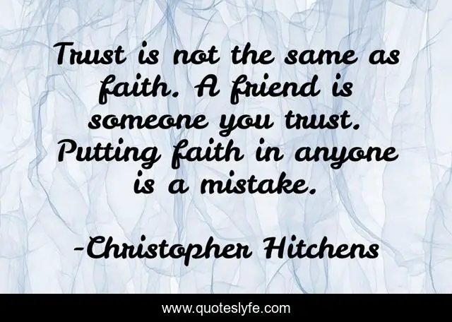 This page presents the quote "Trust is not the same as faith. A friend is someone you trust. Putting faith in anyone is a mistake.". Author of this quote is Christopher Hitchens. This quote is about trust, friend, mistake,.