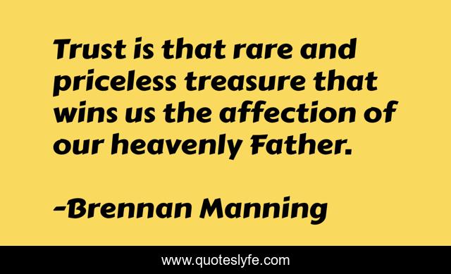 This page presents the quote "Trust is that rare and priceless treasure that wins us the affection of our heavenly Father.". Author of this quote is Brennan Manning. This quote is about treasure, father, affection,.