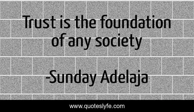 This page presents the quote "Trust is the foundation of any society". Author of this quote is Sunday Adelaja. This quote is about foundation, trust, society,.