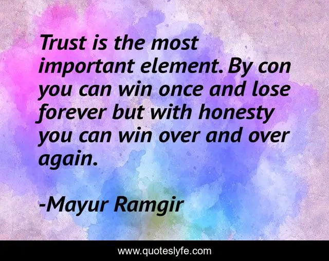 This page presents the quote "Trust is the most important element. By con you can win once and lose forever but with honesty you can win over and over again.". Author of this quote is Mayur Ramgir. This quote is about trust, honesty,.