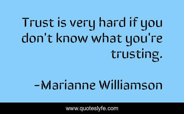 This page presents the quote "Trust is very hard if you don't know what you're trusting.". Author of this quote is Marianne Williamson. .