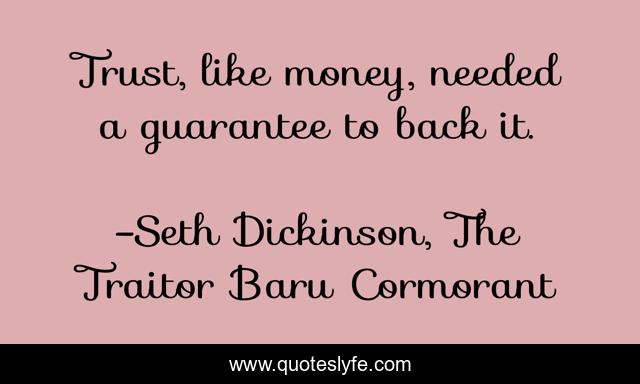 "Seth Dickinson, The Traitor Baru Cormorant Quotes." Quoteslyfe.com, 2025. Sun. 07 Dec. 2025. <https://www.quoteslyfe.com/quote/Trust-like-money-needed-a-guarantee-to-80215>.