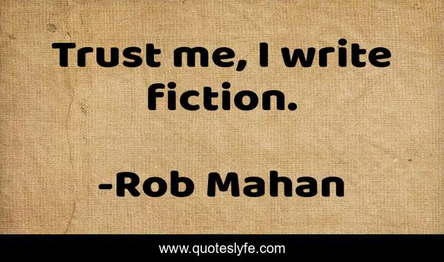 "Rob Mahan Quotes." Quoteslyfe.com, 2025. Fri. 05 Dec. 2025. <https://www.quoteslyfe.com/quote/Trust-me-I-write-fiction-149253>.