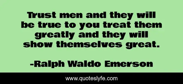 This page presents the quote "Trust men and they will be true to you treat them greatly and they will show themselves great.". Author of this quote is Ralph Waldo Emerson. This quote is about great, men, treat,.
