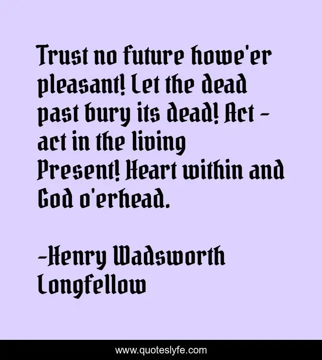 "Henry Wadsworth Longfellow Quotes." Quoteslyfe.com, 2025. Sat. 06 Dec. 2025. <https://www.quoteslyfe.com/quote/Trust-no-future-howe-er-pleasant-Let-259626>.