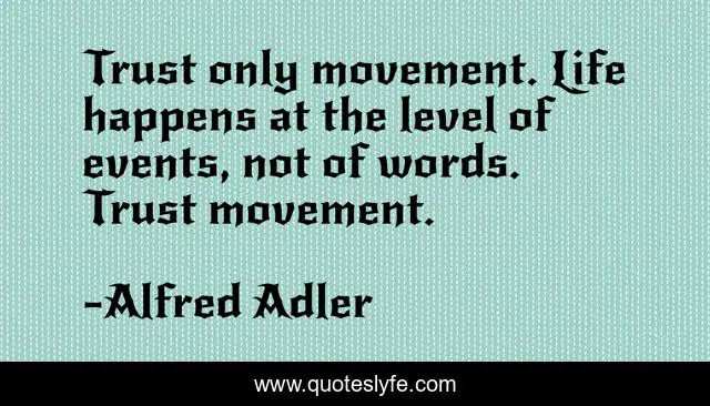 This page presents the quote "Trust only movement. Life happens at the level of events, not of words. Trust movement.". Author of this quote is Alfred Adler. .