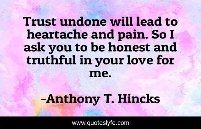 This page presents the quote "Trust undone will lead to heartache and pain. So I ask you to be honest and truthful in your love for me.". Author of this quote is Anthony T. Hincks. This quote is about heartache, heart, life, love, philosophy, honest, undone, pain, trust,.