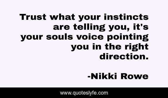 This page presents the quote "Trust what your instincts are telling you, it's your souls voice pointing you in the right direction.". Author of this quote is Nikki Rowe. This quote is about instinct, inner-voice, strength, soul,.