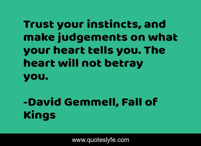 This page presents the quote "Trust your instincts, and make judgements on what your heart tells you. The heart will not betray you.". Author of this quote is David Gemmell, Fall of Kings. This quote is about instinct, trust, self-reliance, decision-making,.