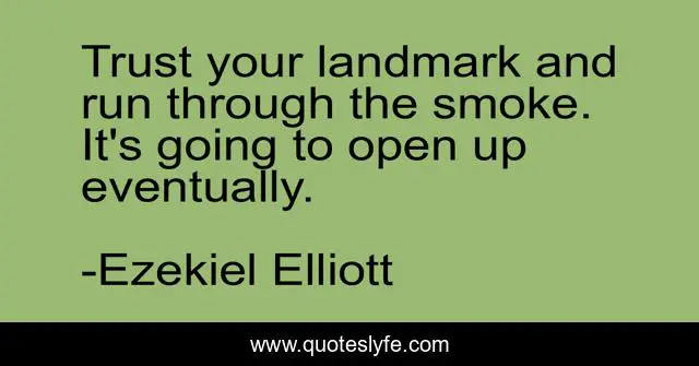 This page presents the quote "Trust your landmark and run through the smoke. It's going to open up eventually.". Author of this quote is Ezekiel Elliott. This quote is about run, through, smoke,.