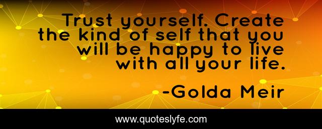 This page presents the quote "Trust yourself. Create the kind of self that you will be happy to live with all your life.". Author of this quote is Golda Meir. This quote is about self, trust-yourself, happiness,.