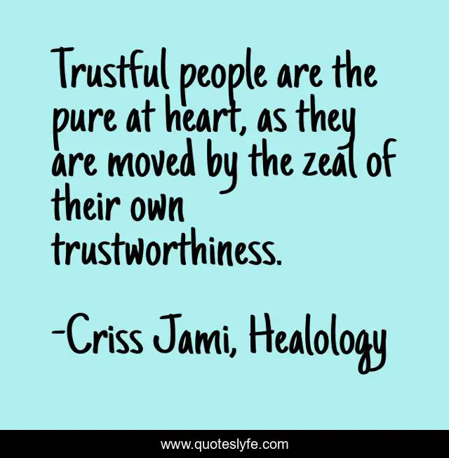 "Criss Jami, Healology Quotes." Quoteslyfe.com, 2025. Mon. 08 Dec. 2025. <https://www.quoteslyfe.com/quote/Trustful-people-are-the-pure-at-heart-9766>.