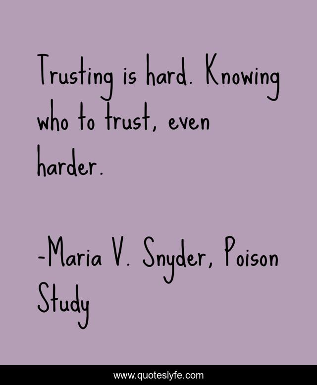 "Maria V. Snyder, Poison Study Quotes." Quoteslyfe.com, 2025. Sun. 07 Dec. 2025. <https://www.quoteslyfe.com/quote/Trusting-is-hard-Knowing-who-to-trust-119113>.