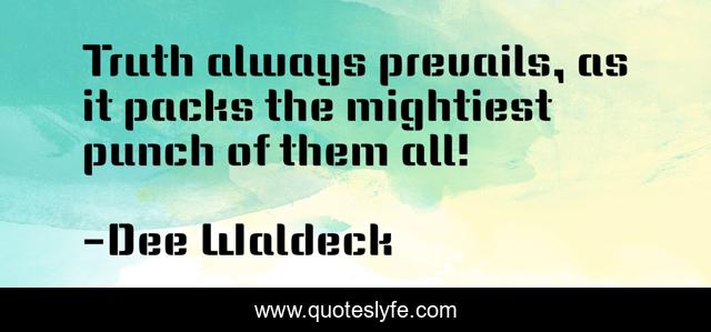 This page presents the quote "Truth always prevails, as it packs the mightiest punch of them all!". Author of this quote is Dee Waldeck. This quote is about inspirational-life, positive-thinking, inspirational-attitude, positive-attitude, inspirational, strength-and-courage, enthusiasm,.