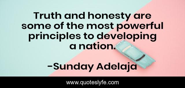 This page presents the quote "Truth and honesty are some of the most powerful principles to developing a nation.". Author of this quote is Sunday Adelaja. This quote is about nation, principle, truth, honesty,.