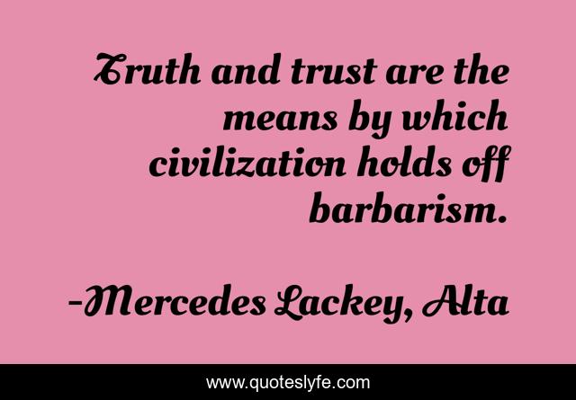 This page presents the quote "Truth and trust are the means by which civilization holds off barbarism.". Author of this quote is Mercedes Lackey, Alta. .