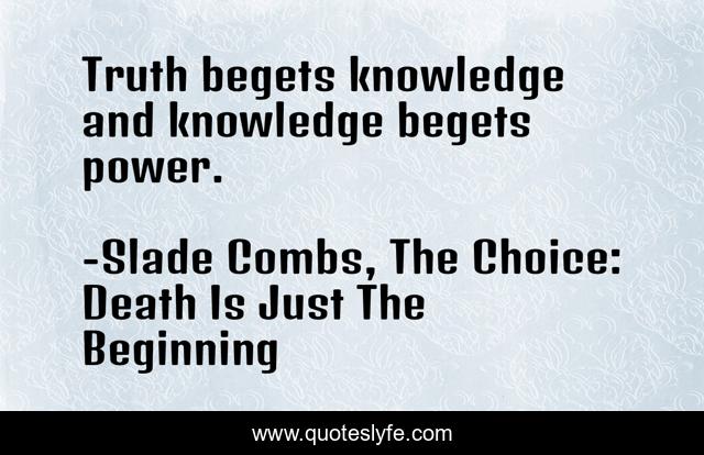 "Slade Combs, The Choice: Death Is Just The Beginning Quotes." Quoteslyfe.com, 2025. Fri. 05 Dec. 2025. <https://www.quoteslyfe.com/quote/Truth-begets-knowledge-and-knowledge-begets-power-88823>.