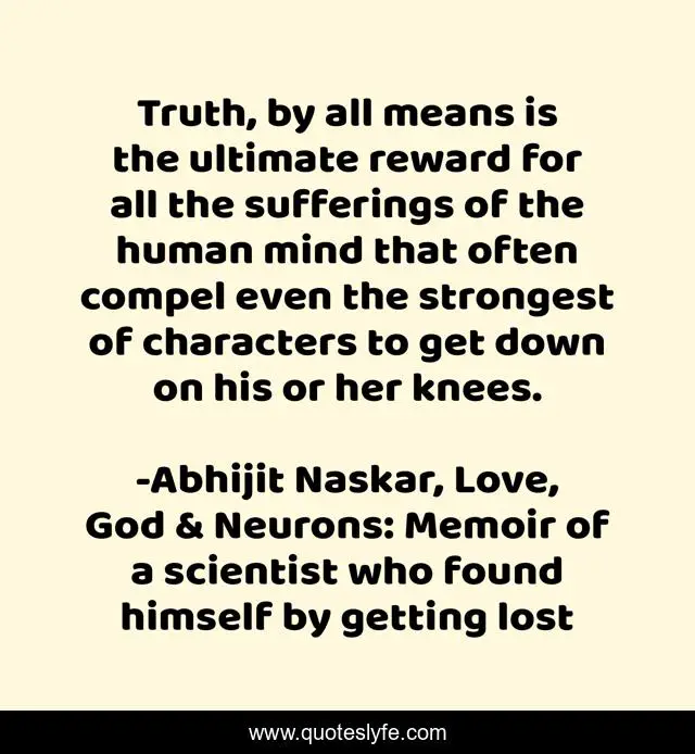 "Abhijit Naskar, Love, God & Neurons: Memoir of a scientist who found himself by getting lost Quotes." Quoteslyfe.com, 2025. Fri. 05 Dec. 2025. <https://www.quoteslyfe.com/quote/Truth-by-all-means-is-the-ultimate-38094>.