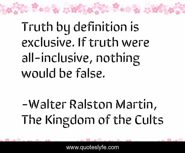 "Walter Ralston Martin, The Kingdom of the Cults Quotes." Quoteslyfe.com, 2025. Sun. 07 Dec. 2025. <https://www.quoteslyfe.com/quote/Truth-by-definition-is-exclusive-If-truth-218980>.