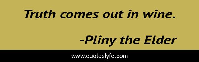 This page presents the quote "Truth comes out in wine.". Author of this quote is Pliny the Elder. This quote is about wine, out,.