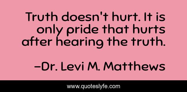 This page presents the quote "Truth doesn't hurt. It is only pride that hurts after hearing the truth.". Author of this quote is Dr. Levi M. Matthews. .