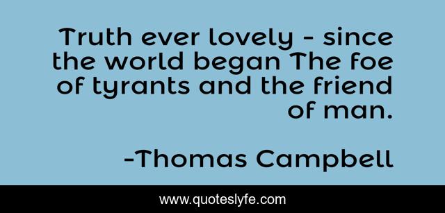 This page presents the quote "Truth ever lovely - since the world began The foe of tyrants and the friend of man.". Author of this quote is Thomas Campbell. .