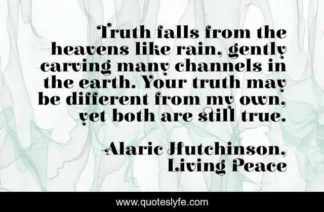 "Alaric Hutchinson, Living Peace Quotes." Quoteslyfe.com, 2025. Fri. 05 Dec. 2025. <https://www.quoteslyfe.com/quote/Truth-falls-from-the-heavens-like-rain-61335>.
