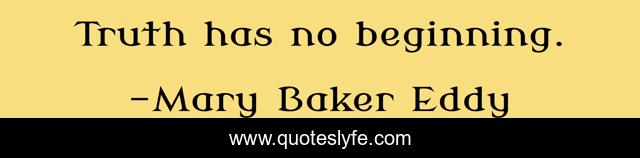This page presents the quote "Truth has no beginning.". Author of this quote is Mary Baker Eddy. .