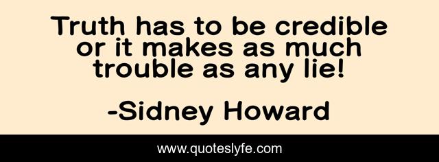 This page presents the quote "Truth has to be credible or it makes as much trouble as any lie!". Author of this quote is Sidney Howard. This quote is about lies, truth,.