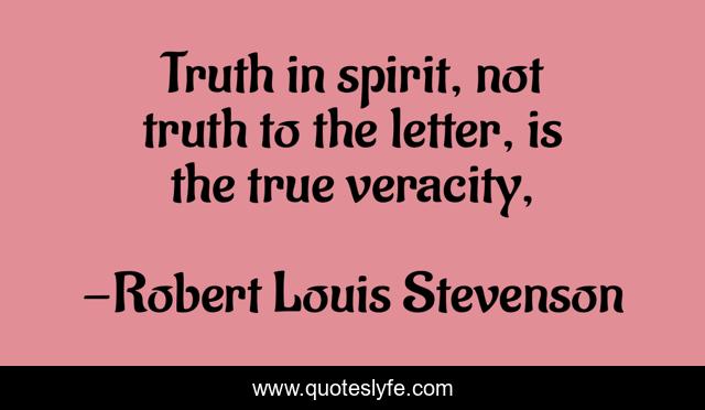 This page presents the quote "Truth in spirit, not truth to the letter, is the true veracity, ". Author of this quote is Robert Louis Stevenson. This quote is about veracity, spirit, truth,.