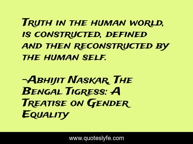 "Abhijit Naskar, The Bengal Tigress: A Treatise on Gender Equality Quotes." Quoteslyfe.com, 2025. Fri. 05 Dec. 2025. <https://www.quoteslyfe.com/quote/Truth-in-the-human-world-is-constructed-31143>.