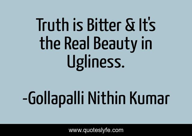 This page presents the quote "Truth is Bitter & It's the Real Beauty in Ugliness.". Author of this quote is Gollapalli Nithin Kumar. This quote is about ugliness, bitter, beauty, truth,.