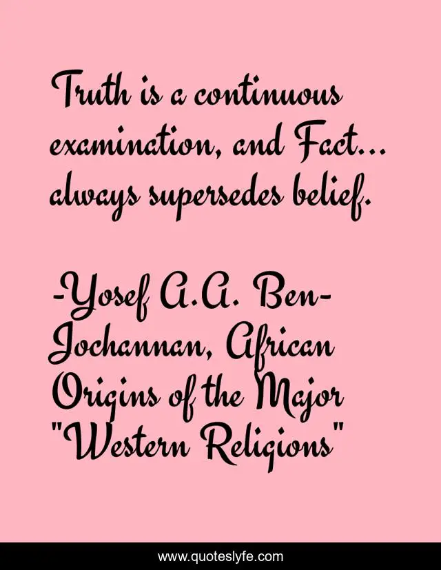 "Yosef A.A. Ben-Jochannan, African Origins of the Major "Western Religions" Quotes." Quoteslyfe.com, 2025. Fri. 05 Dec. 2025. <https://www.quoteslyfe.com/quote/Truth-is-a-continuous-examination-and-Fact-111419>.