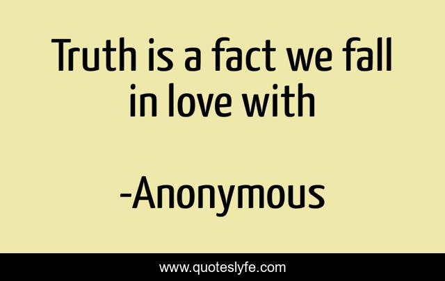 This page presents the quote "Truth is a fact we fall in love with". Author of this quote is Anonymous. This quote is about fact, lovequotes, truth,.