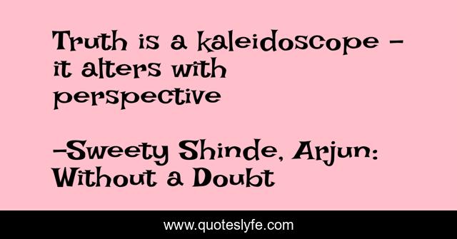 This page presents the quote "Truth is a kaleidoscope - it alters with perspective". Author of this quote is Sweety Shinde, Arjun: Without a Doubt. This quote is about perspective, truth,.